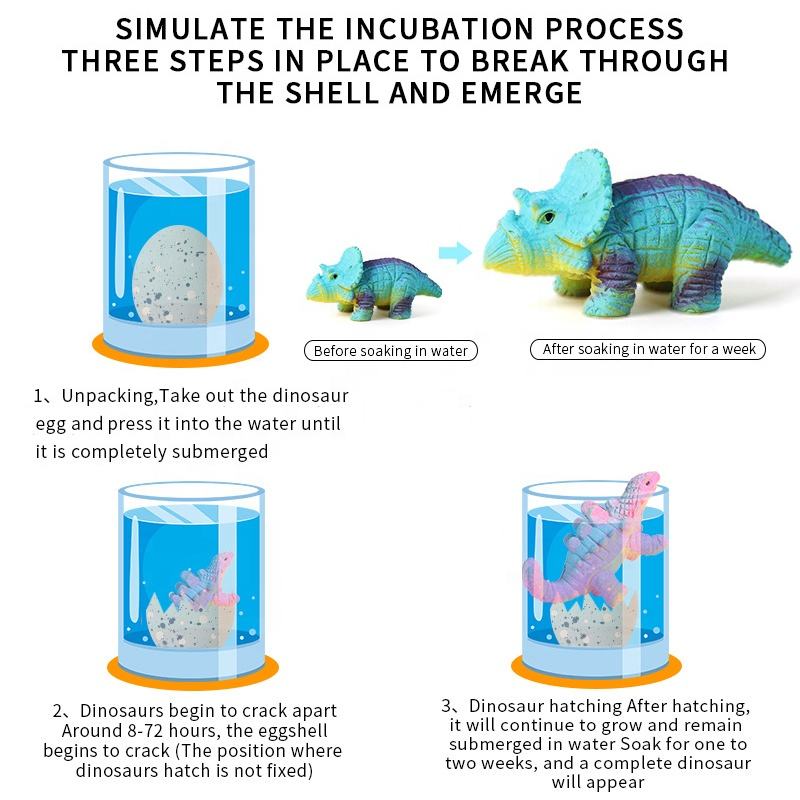 Product name: water growing dinosaur toy:Dinosaur Hatching Surprise Eggs Water Growing Dinosaur Toy For Kids