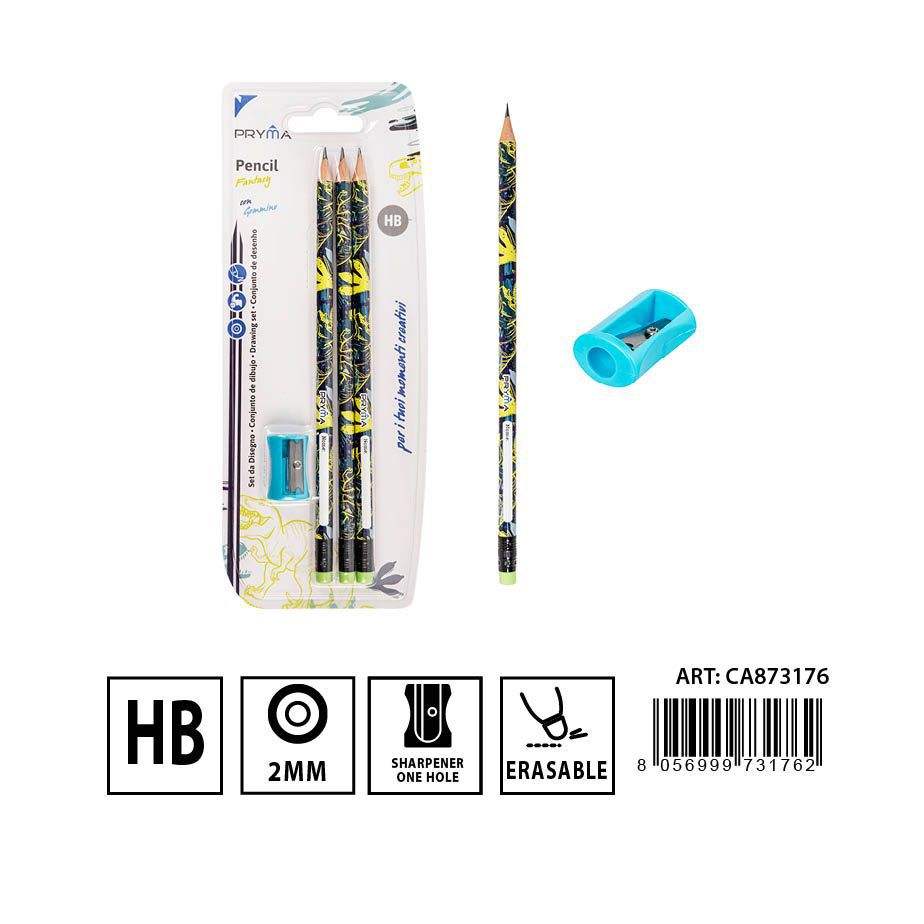Dinosaur Pencil 3 PCS + Sharpener - Writing Tools