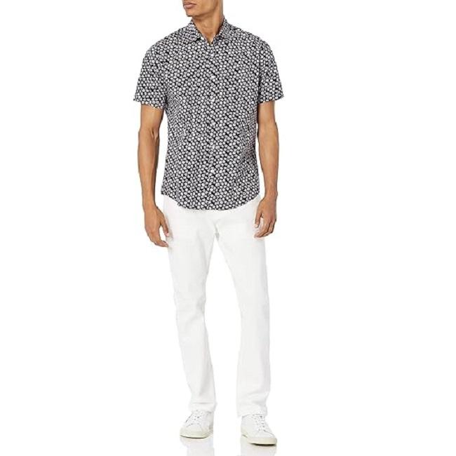Chemise en coton pour homme, coupe ajustée, imprimé floral, manches classiques, tailles variées, qualité export directe usine du Bangladesh, idéale pour le printemps