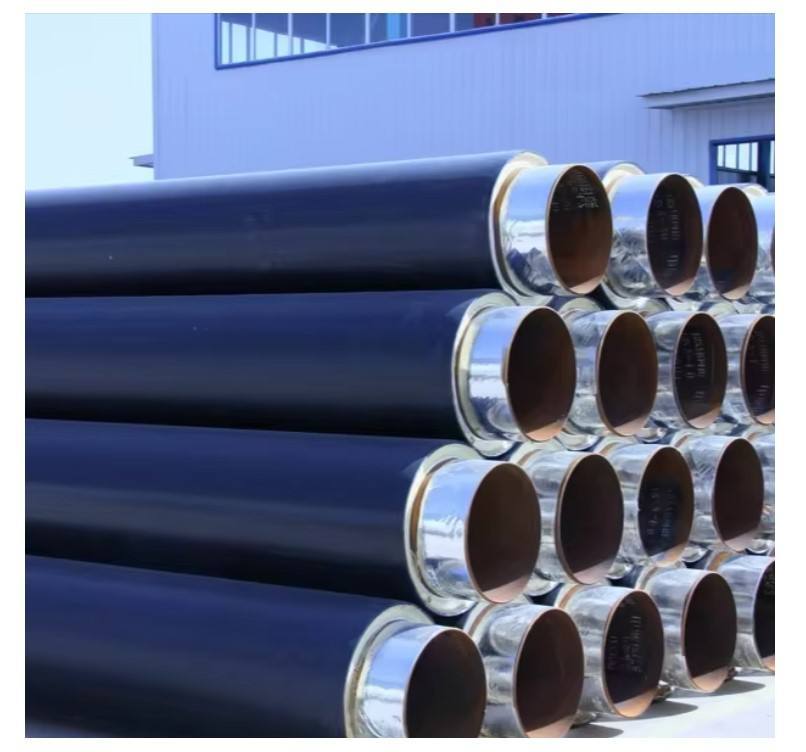 Tuyau en acier sans soudure à gaine en PEHD pour installation directe en extérieur, avec revêtement en mousse de polyuréthane pré-isolée par pulvérisation, longue durée de vie