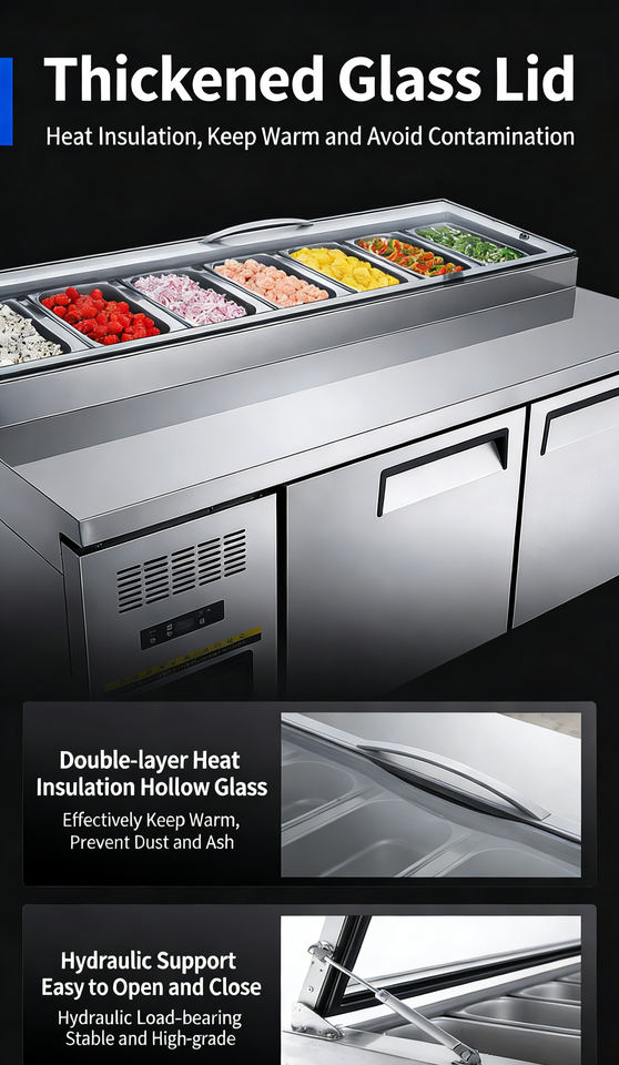 Plan de travail de cuisine en acier inoxydable de 1,8 mètre à refroidissement direct, table à pizza, réfrigérateur sous comptoir de haute qualité