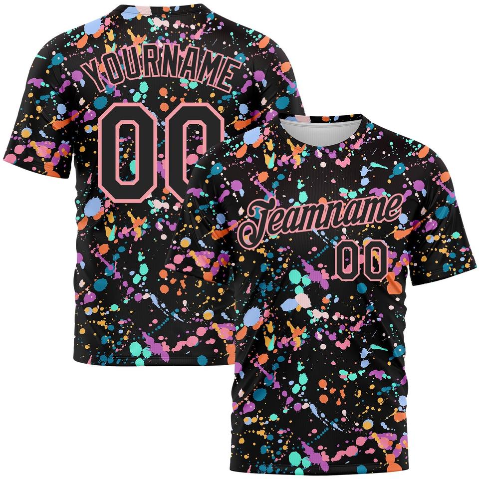 Direct Engro Sportswear Wholesale Custom Graffiti Pattern Black-Medium Pink 3D Expressive Splatter Performance T-Shirt