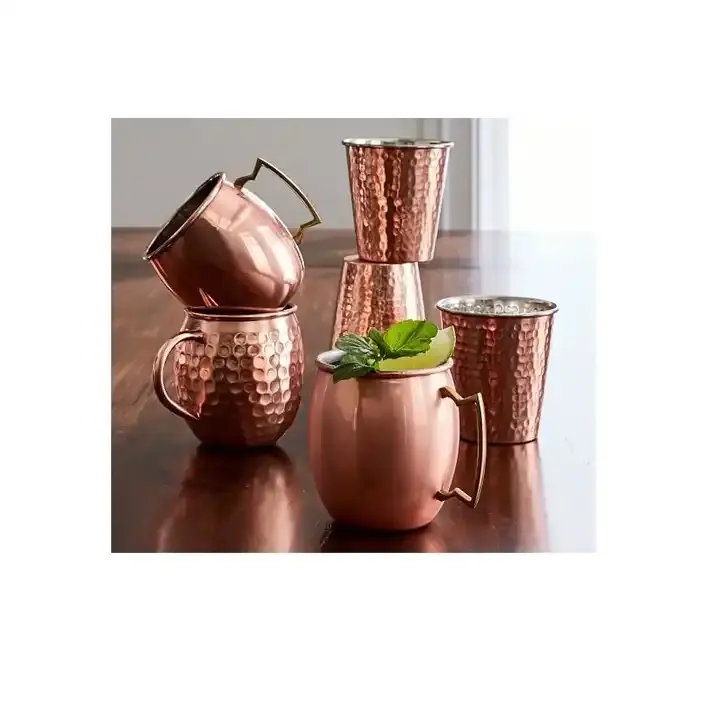 Exportation directe depuis l'Inde Tasses en cuivre pur martelé fabriquées à la main pour une forte demande dans les restaurants hôtels mariages pour Noël