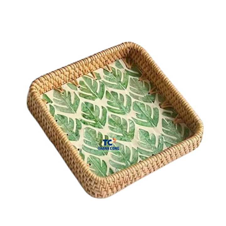 Exportateur Direct Plateau en Rotin Nacre Élégant pour Présentation de Café Plateau de Table en Rotin Vietnam