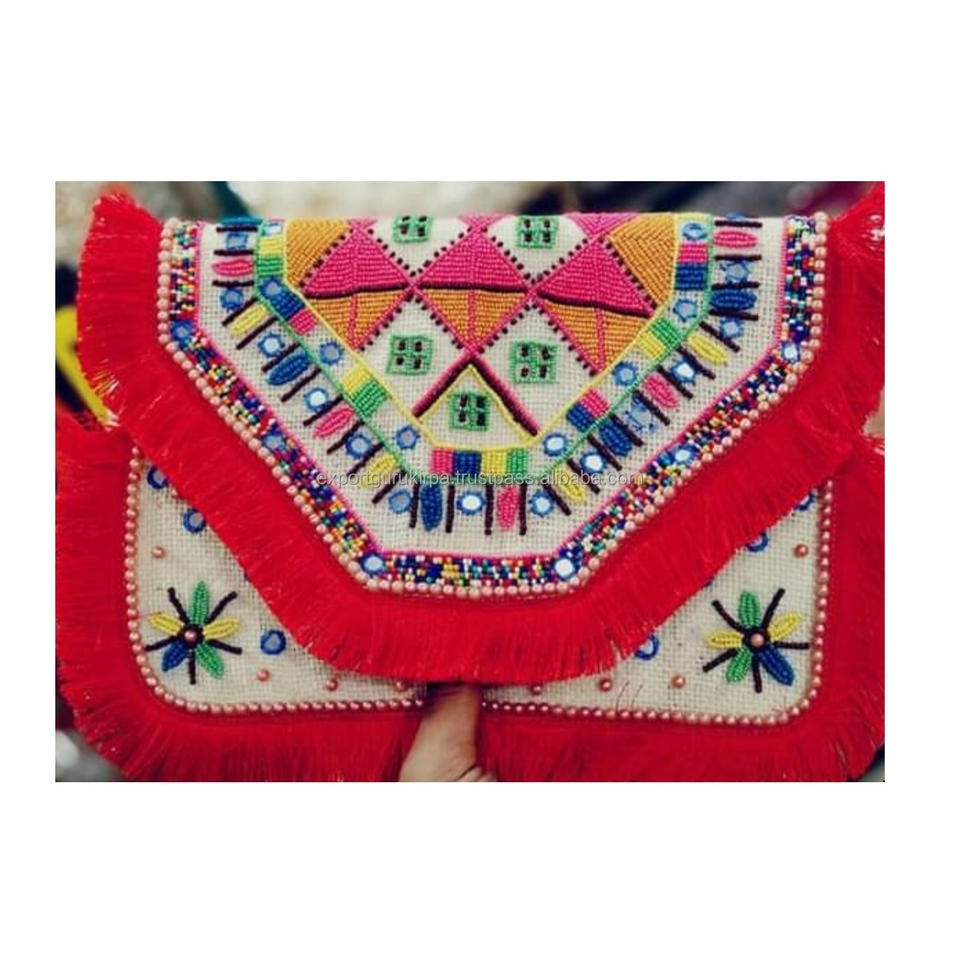 Pochette de soirée en jute pour femme, style enveloppe, ornée de perles indiennes artisanales, pour mariage, vente en gros, Guru Kirpa Export
