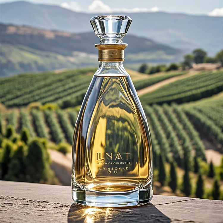 Bouteille en verre de luxe vintage vide personnalisée pour brandy, whisky, tequila, avec bouchons en liège doré, haute qualité, directement de l'usine