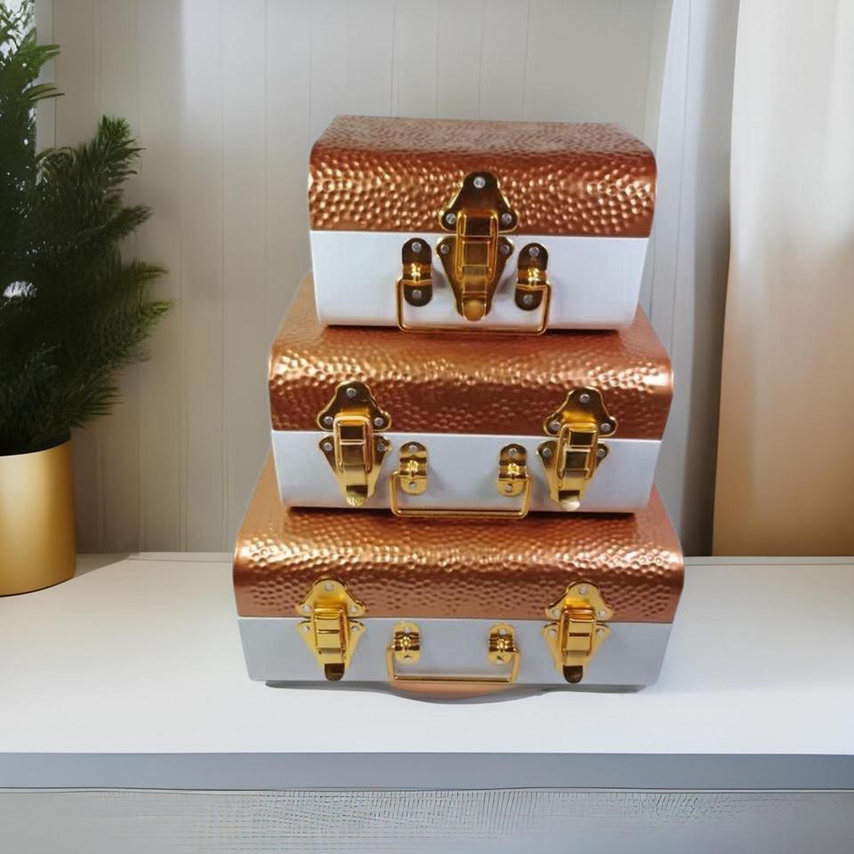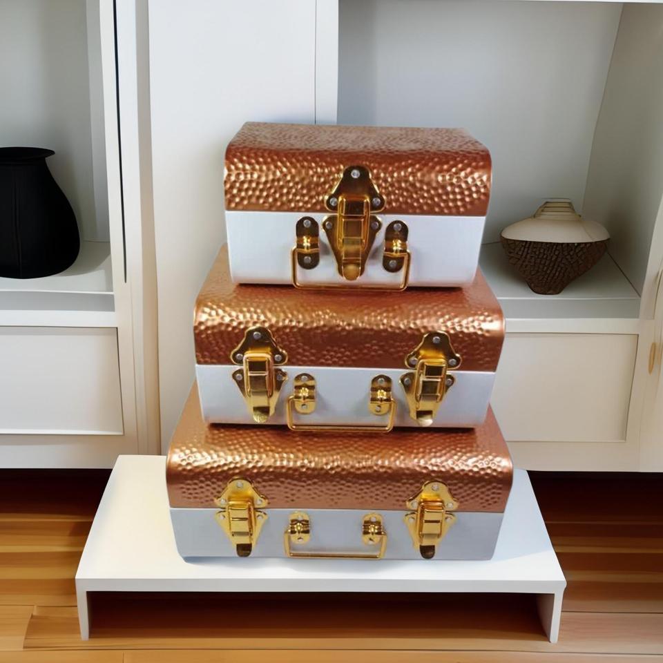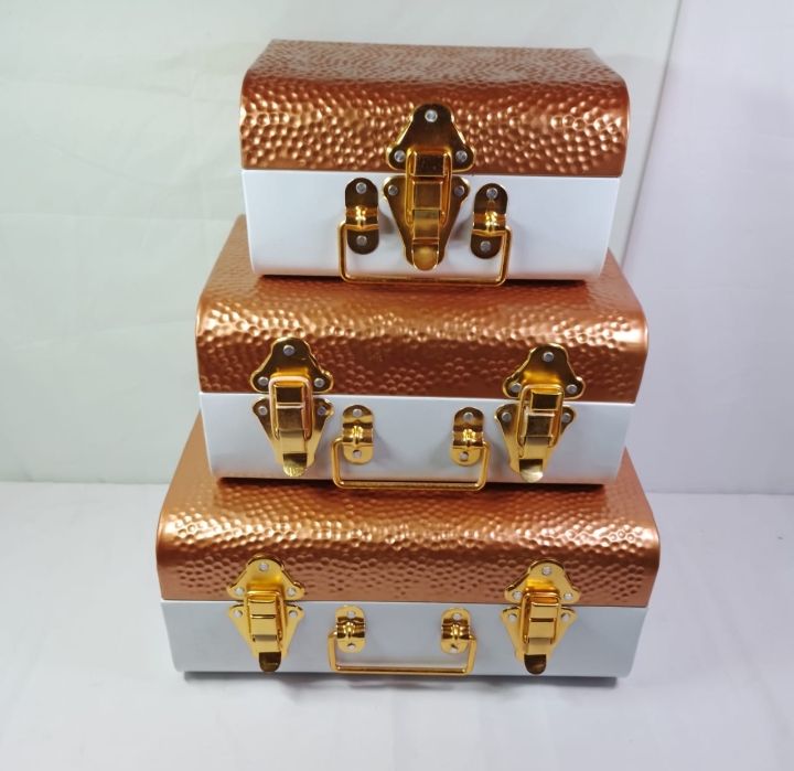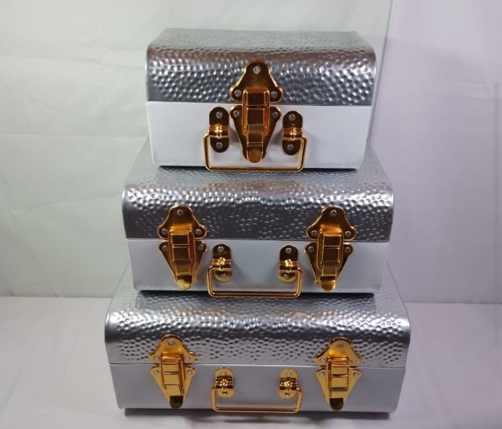 Direct Factory Decor Impex's High Quality Multipurpose Metal Trunk Box Set of 3 Storage Container Jewelry Tools Household Use