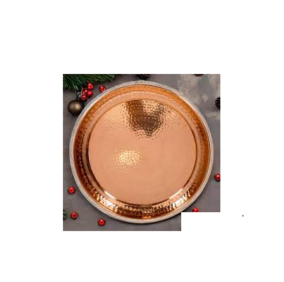 Assiette de service décorative en cuivre faite à la main, directement de l'usine, pour la restauration hôtelière, les banquets et la mise en scène de tables festives, disponible à la vente