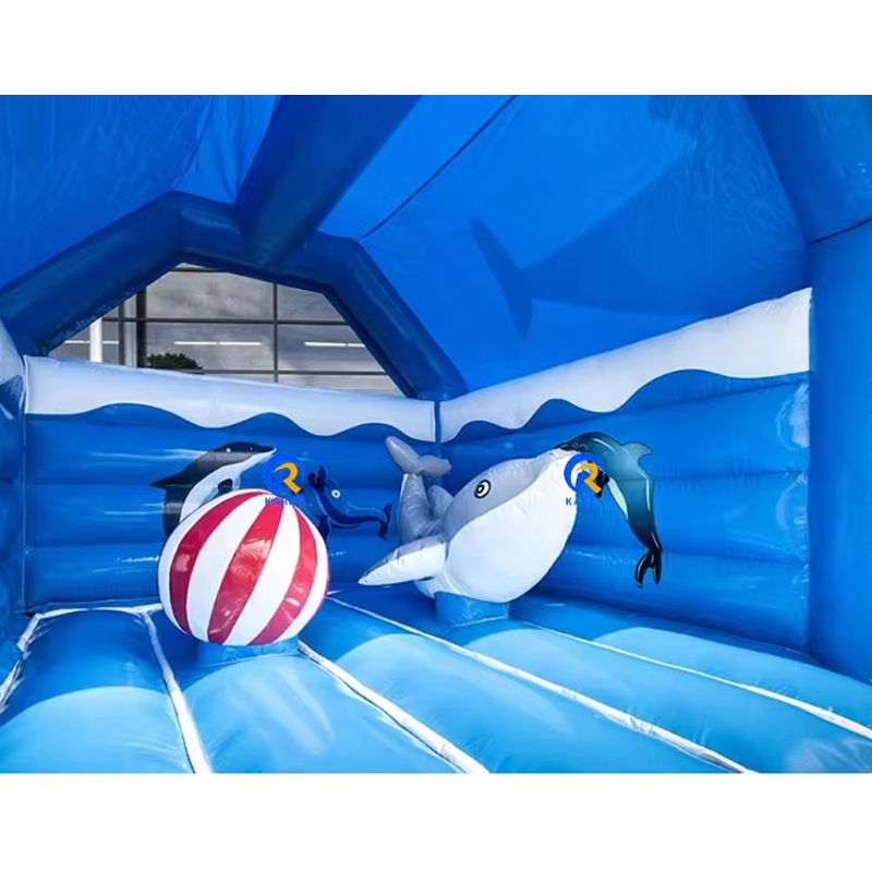 Maison gonflable de rebond de château de dauphin d'usine directe avec le videur gonflable commercial fait sur commande de glissière