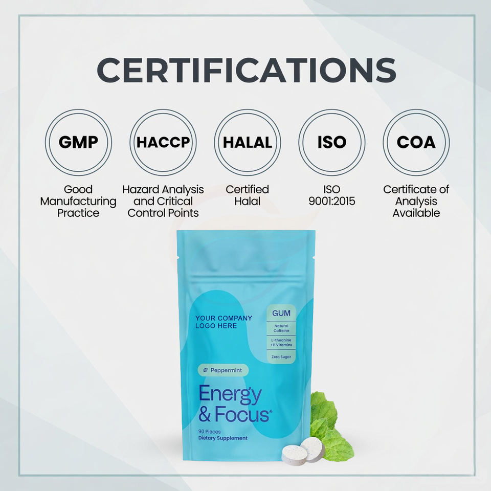 Chewing-gum énergétique Direct Factory avec 60 mg de caféine, sans sucre, nutrition sportive, OEM, marque privée
