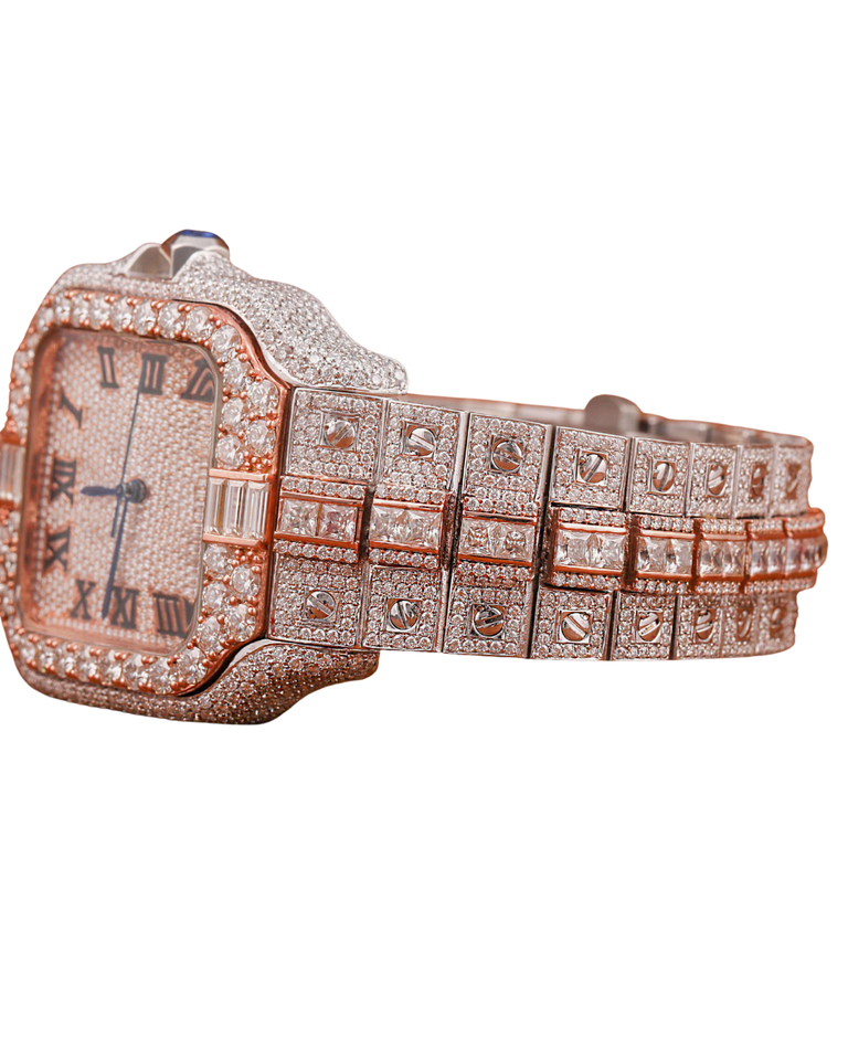 Montre connectée de luxe pour homme, directement de l'usine, bicolore, avec diamants Moissanite de clarté VVS et affichage en or rose entièrement serti