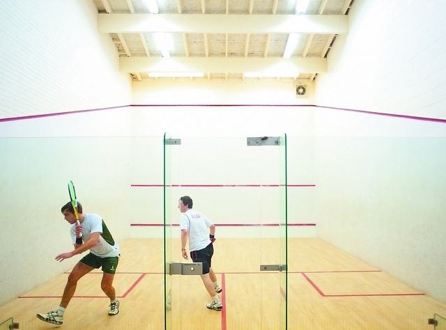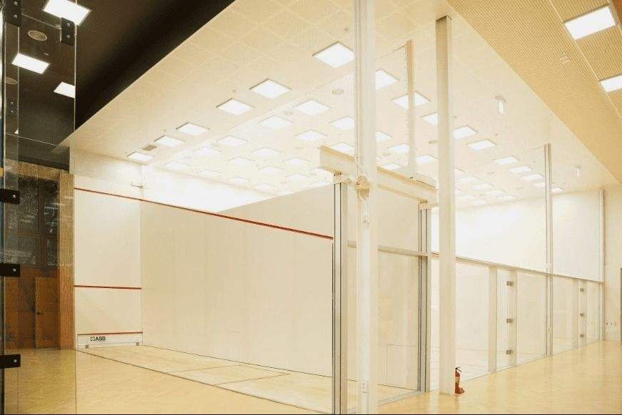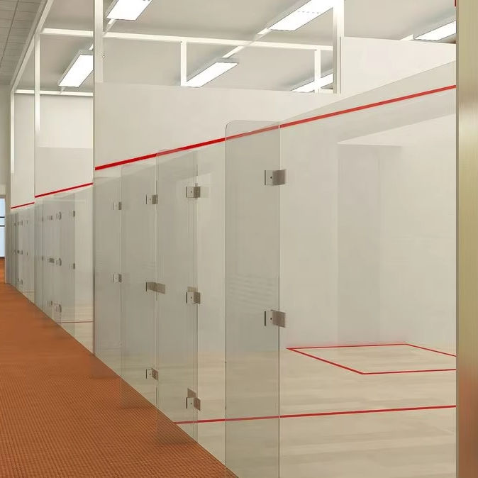 Terrain ou terrain de squash fabriqué directement en usine avec plancher en bois de verres trempés de 12mm et joints en acier inoxydable