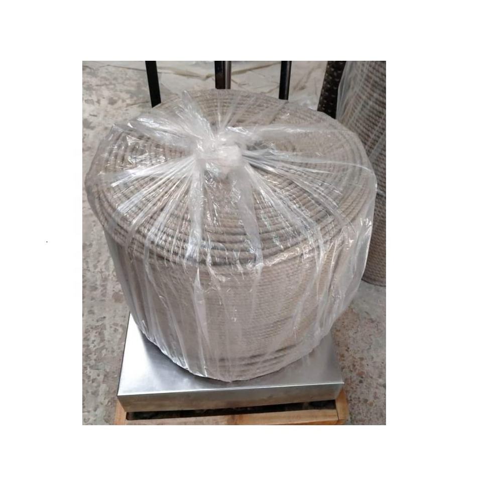 25 kg par bobine chaque bobine enveloppée avec poly puis 2 bobines chaque ferme enveloppée avec un sac en toile de jute