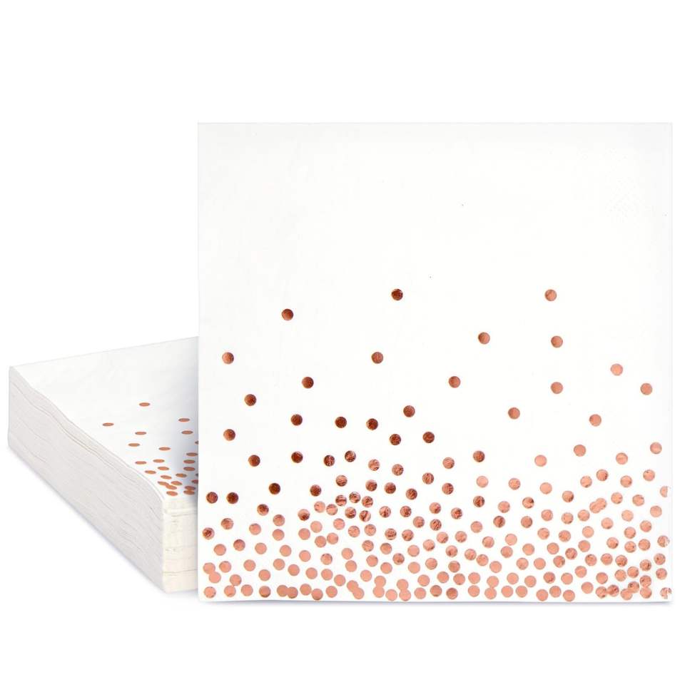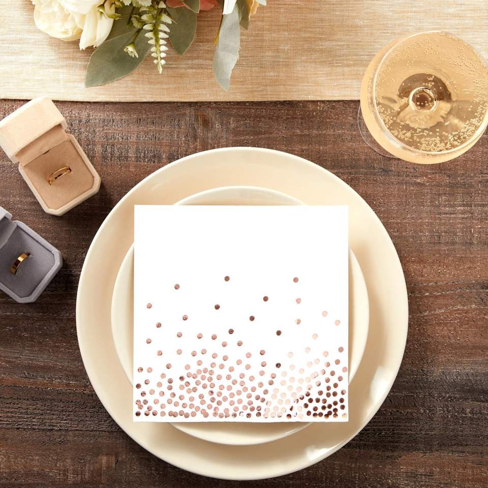 Direct Factory OEM Lot de 50 serviettes en or rose 6.5 pouces serviettes de table jetables 3 plis pour les serviettes en papier d'anniversaire de mariage