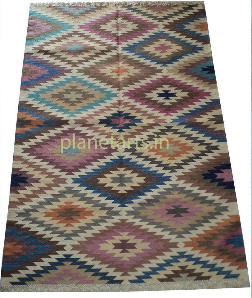 Tapis décoratif carré Punja Dhurrie tissé à la main, prix direct usine, personnalisable, technique de tissage plat, ensembles de tapis en coton