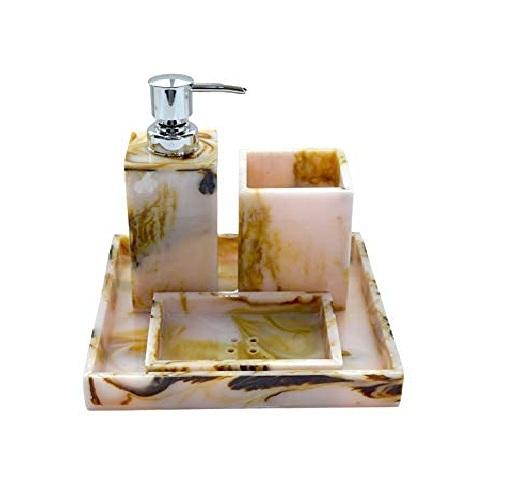 Ensemble de salle de bain en résine 4 pièces personnalisé pour la maison, distributeur de savon, porte-brosse à dents, plateau de toilette, prix imbattable, directement de l'usine