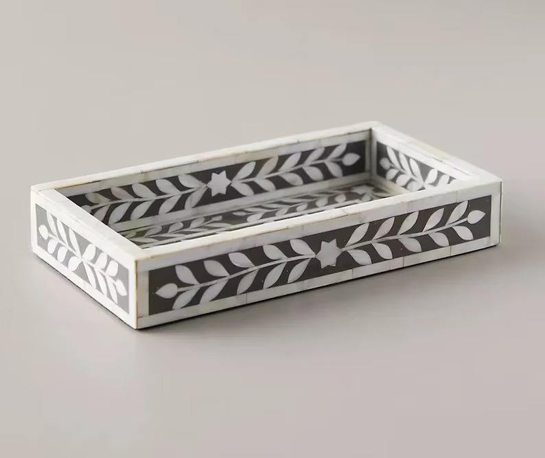 Plateau de service en MDF avec incrustations de os, design floral, Direct Factory Royal Decore Mart, pour la maison, les hôtels, les restaurants, articles de cuisine, Inde
