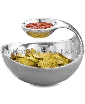 Vente directe d'usine plat de service en métal poli argenté personnalisé meilleure décoration de table de fête bol à trempette Chip n à bas prix