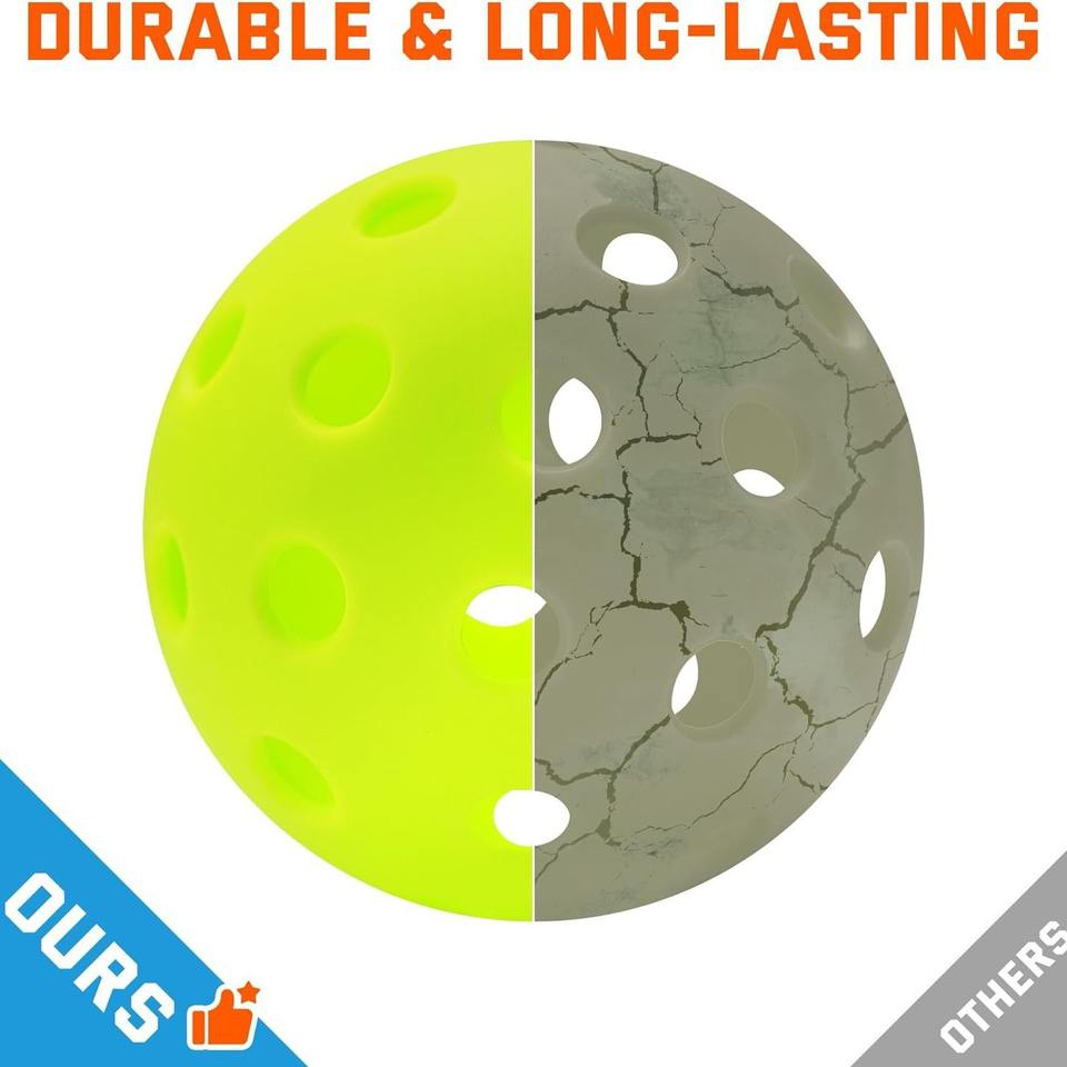 Vente directe usine – Balle de pickleball extérieure de haute qualité 74 mm, durable, élastique, moulée par injection, en plastique, pour le divertissement