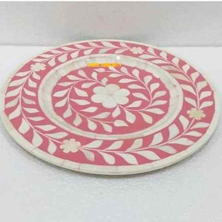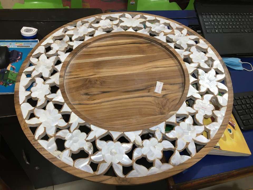 Vente directe d'usine, plateau de service en bois d'acacia à incrustations, plateau artisanal de qualité en nacre indienne, 34x34 cm, hôtel