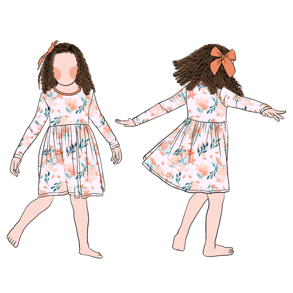 Robe décontractée à col rond et imprimé floral à manches longues pour filles et enfants pour la saison d'automne vente directe d'usine