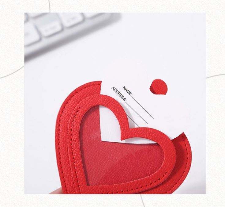 Vente directe usine – Étiquette de bagage en cuir PU motif cœur simple avec lettres et logo, idéale pour cadeau et anti-perte