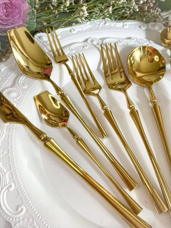Vente directe d'usine couverts bicolores ensembles de couverts sophistiqués finis argent et or pour tables modernes