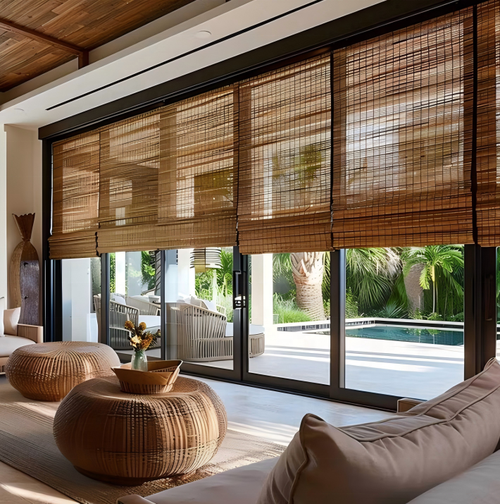 Vente directe en usine de stores vénitiens électriques en bambou Matériau naturel pur pour rideaux d'ombrage de tous les jours Utilisation quotidienne
