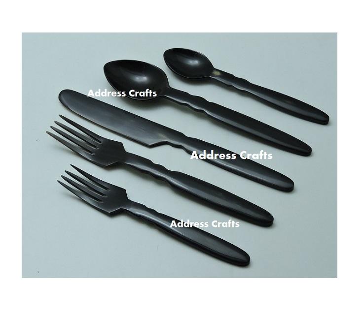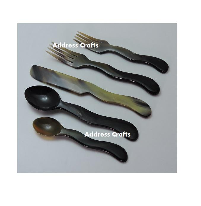 Vente directe en usine de haute qualité corne de buffle dernière conception ensemble de couverts de 5 pièces pour ustensiles de cuisine utilisation de la vaisselle d'hôtel
