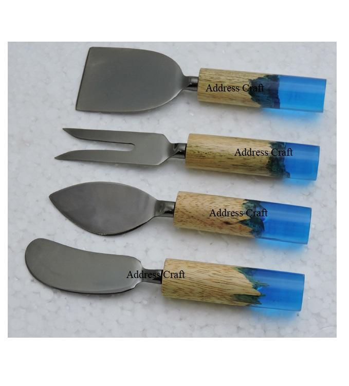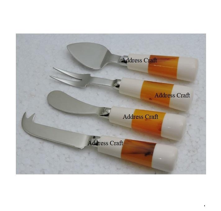 Vente directe en usine ensemble de fromage en acier inoxydable avec manche en résine 2025 vente chaude ensemble de couteaux à fromage épandeur fourchette ensemble de couteaux