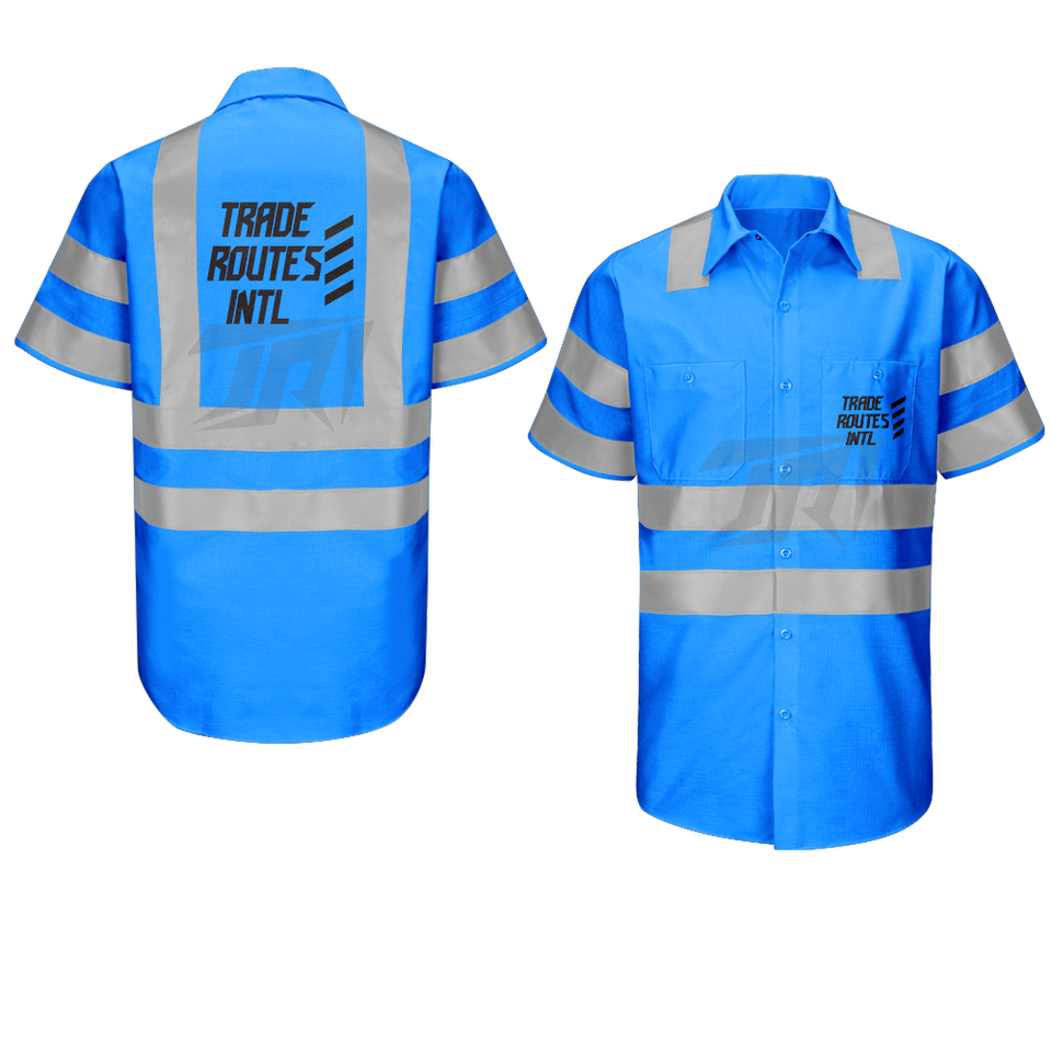 Ensemble global de sécurité en polyester avec logo personnalisé d'approvisionnement direct d'usine bavoir boutonné vêtements réfléchissants à col rond