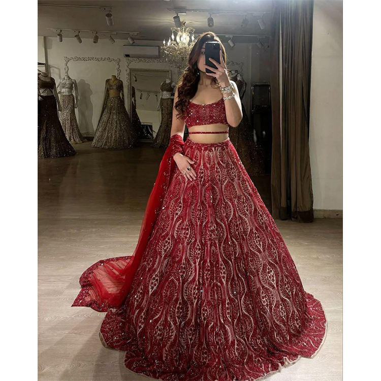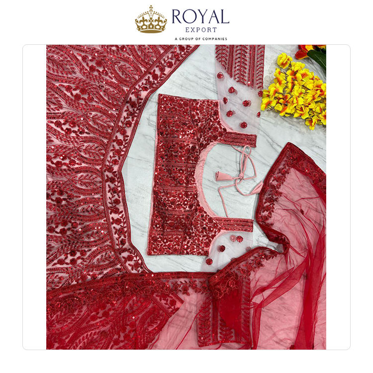 Fourniture directe d'usine nouveau Design Premium Net fil Semi cousu broderie travail femme Lehenga Choli pour vêtements de mariage