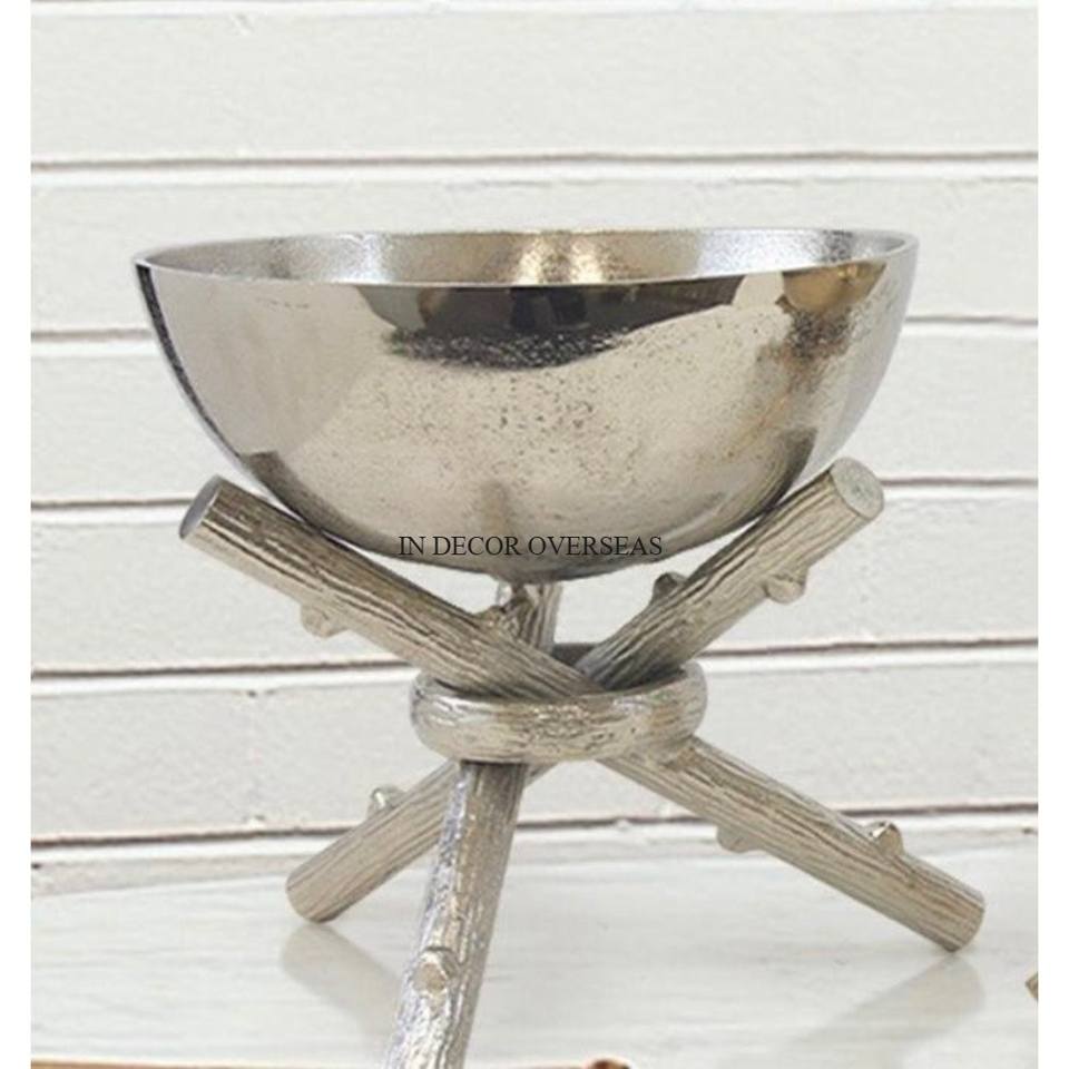 Bol en métal poli brillant de couleur argentée d'approvisionnement direct d'usine avec le support unique de base de concepteur plaqué or de haute qualité d'Inde