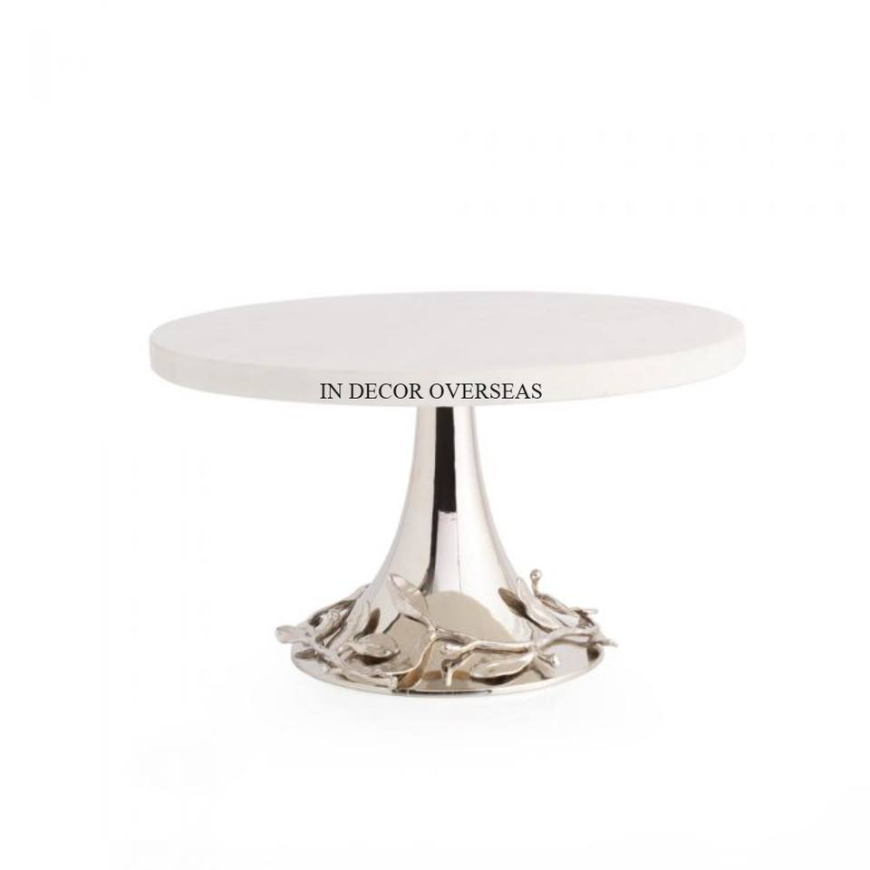 Fourniture directe d'usine couleur argent feuilles polies brillantes support de Base en métal de concepteur pour l'approvisionnement de support de gâteau de dessus rond de marbre blanc