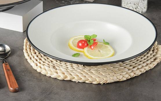 Émail durable et facile à nettoyer directement de l'usine sur plateau de service alimentaire en acier pour restauration et salle à manger