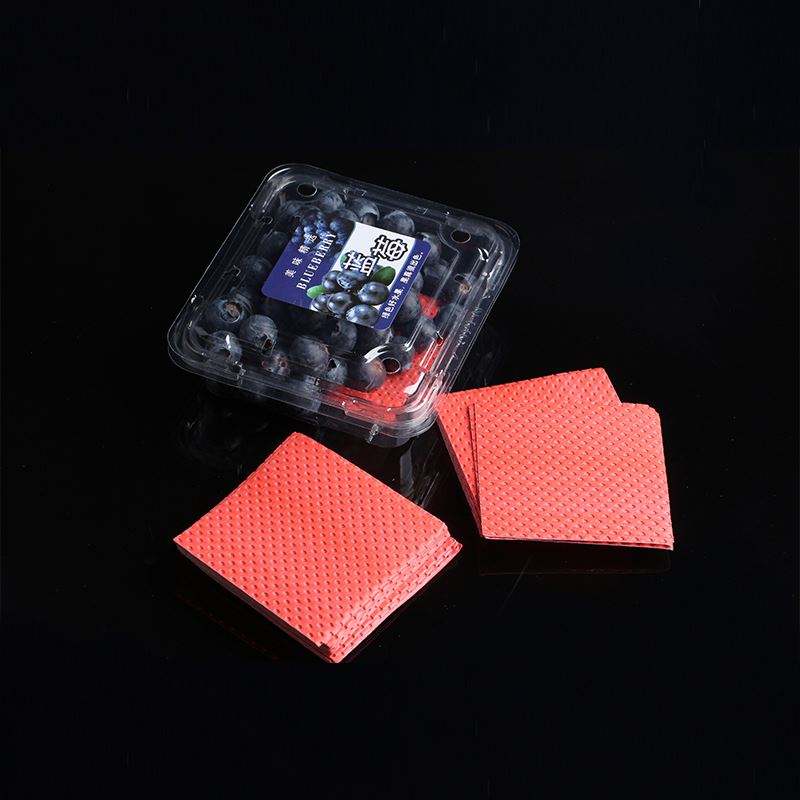 Tampons absorbants pour fruits certifiés ISO, de qualité alimentaire, écologiques, à l'odeur de fraise, avec une capacité d'absorption de 5 ml/pièce (76x76mm) pour l'emballage des fruits