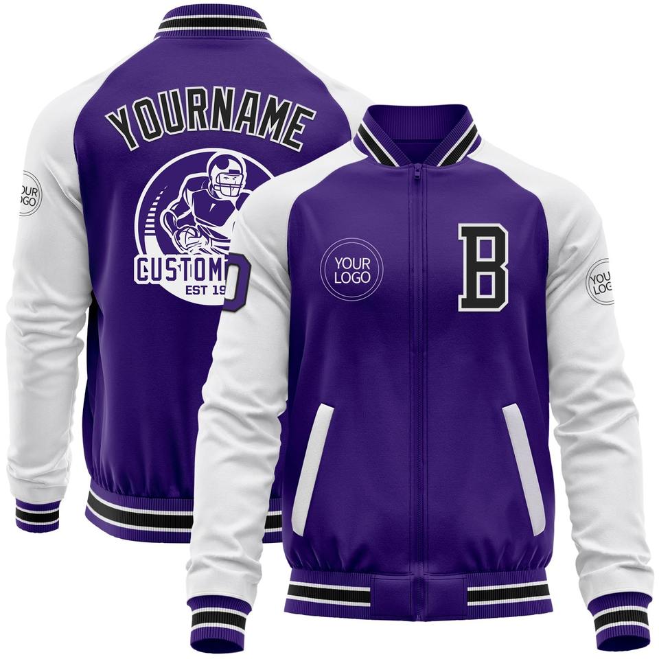 Blouson aviateur bleu marine clair-blanc Varsity Letterman à fermeture éclair Direct Industry Wholesale Casual Winter Custom