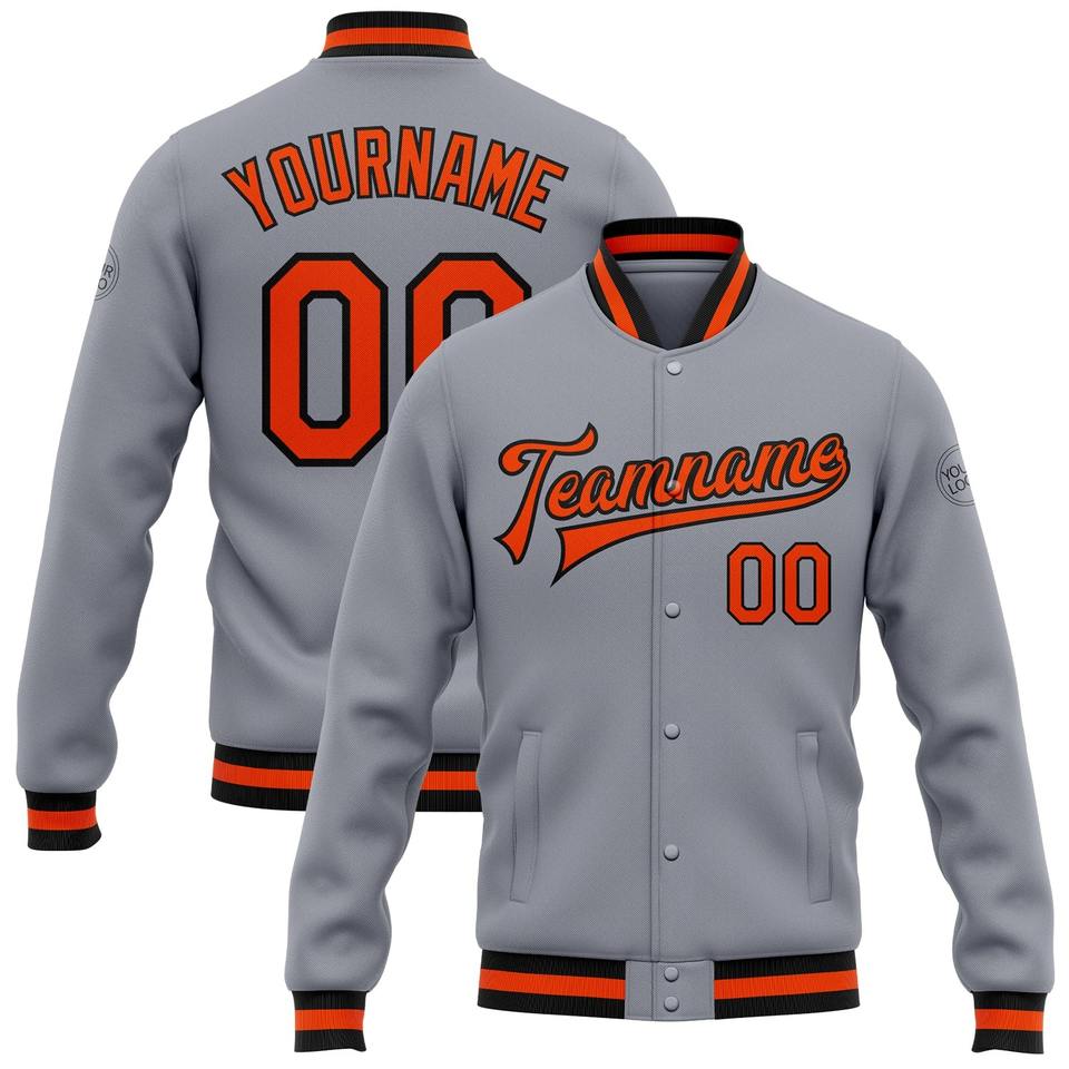 Direct Industry Wholesale Casual Winter Custom Gray Orange-Black Bomber Full-Snap Varsity Letterman Jacket