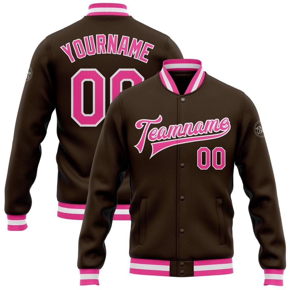 Direct Industry Wholesale Casual Winter Custom Kelly Green Pink-White Bomber Full-Snap Varsity Letterman Jacket