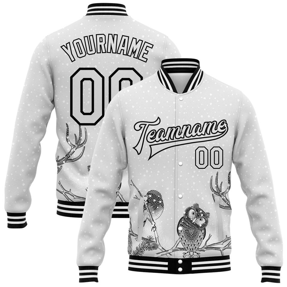 Direct Industry Wholesale Casual Winter Custom White Black Merry Christmas Animals In Winter 3D Bomber Full-Snap Varsity Jacket