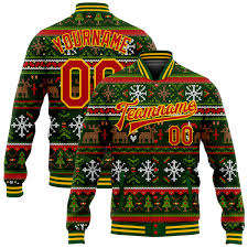 Direct Industry Wholesale Casual Winter Custom Red White Christmas 3D Bomber Full-Snap Varsity Letterman Jacket