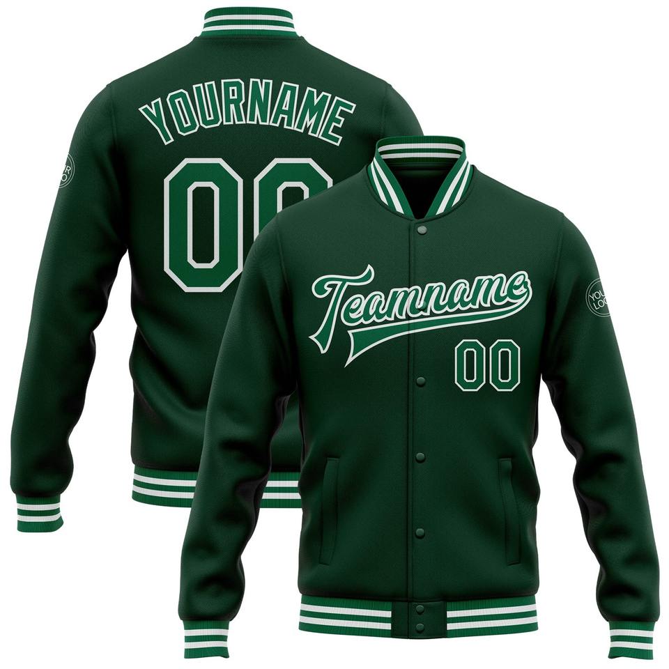 Direct Industry Wholesale Casual Winter Custom Kelly Green Orange-Royal Bomber Full-Snap Varsity Letterman Two Tone Jacket