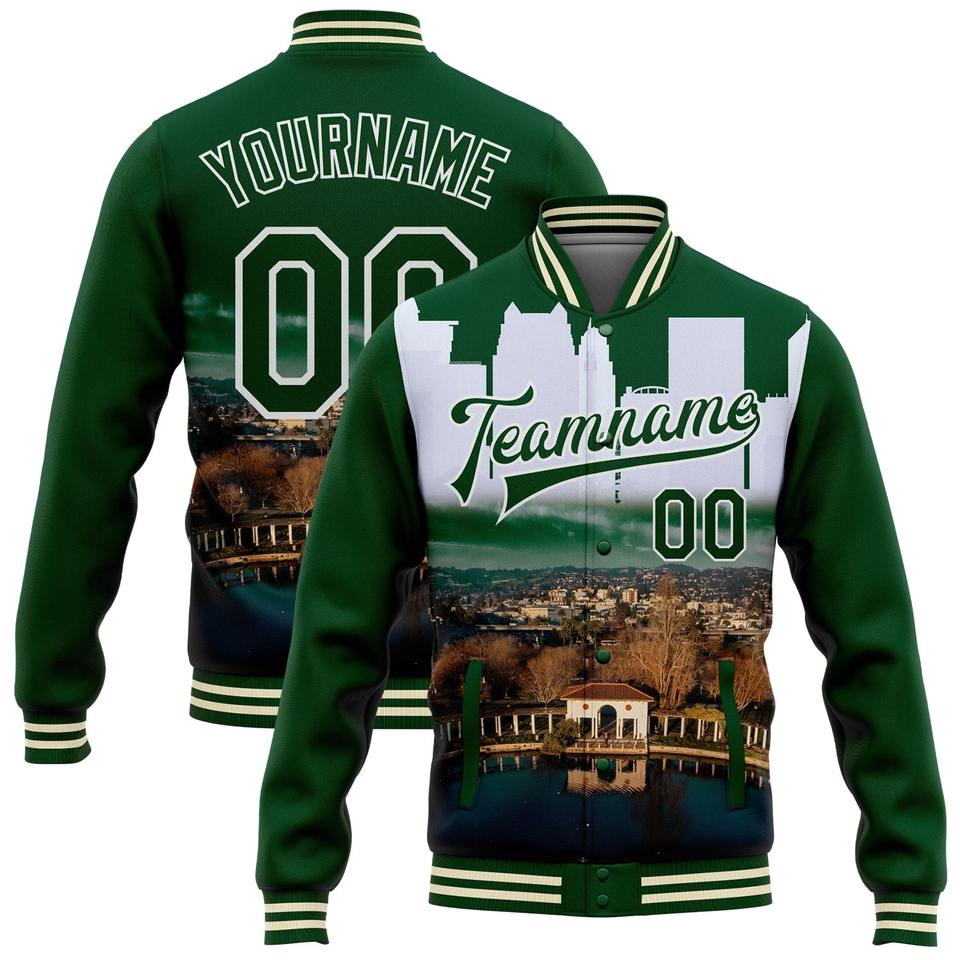 Veste bomber universitaire à lettres 3D en gros directement de l'industrie, décontractée, d'hiver, personnalisée, blanche, vert Kelly, rouge, Mexique, entièrement à boutons-pression