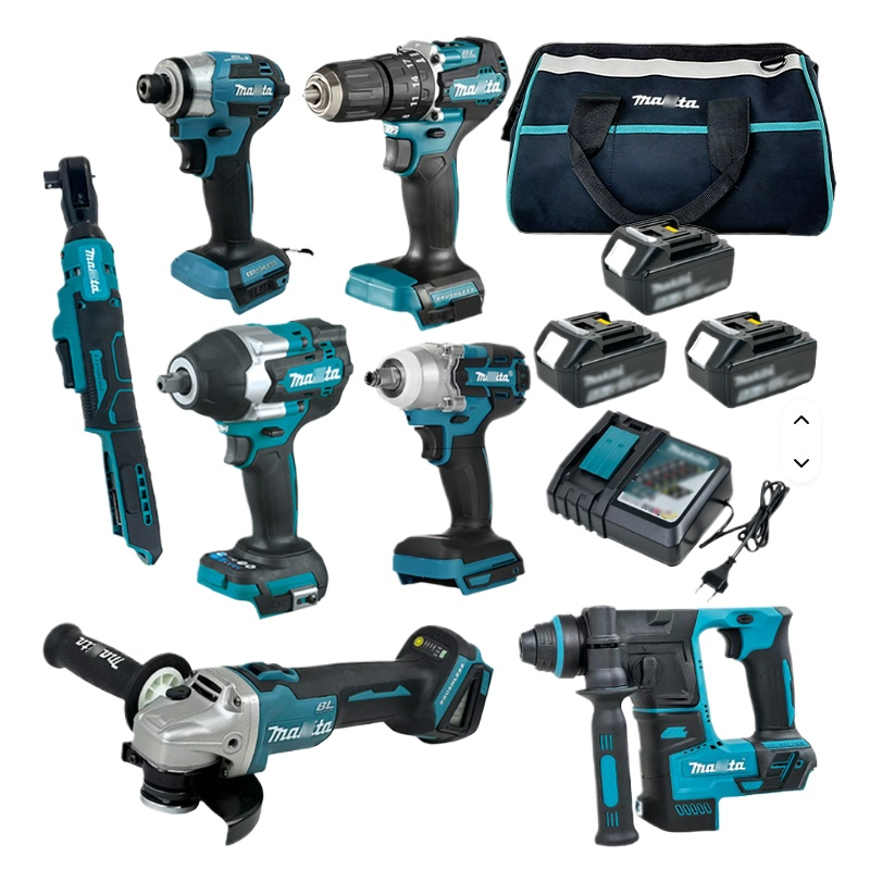 Contient:Perceuse à percussion, tournevis, meuleuse d'angle, clé à choc, scie circulaire
