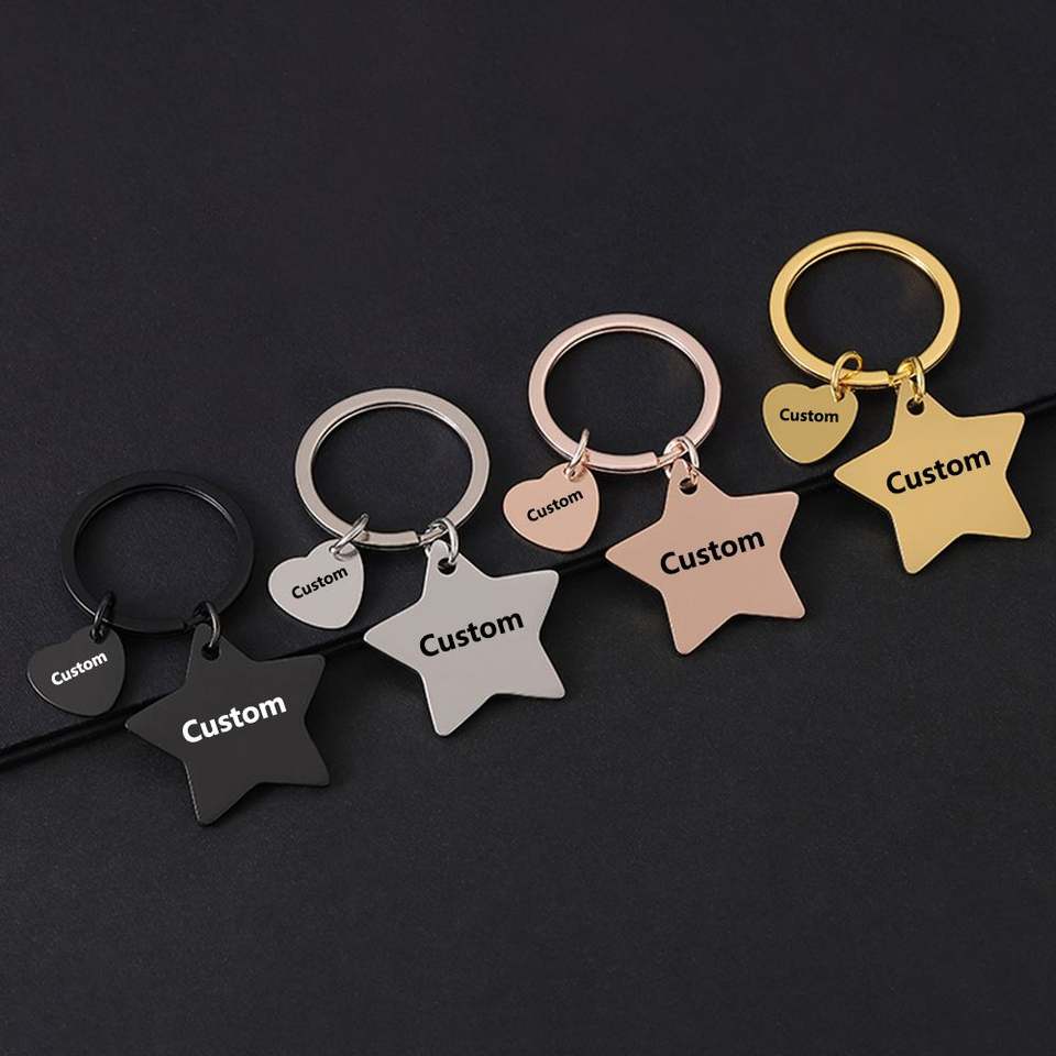 Vente directe de porte-clés personnalisés en acier inoxydable avec petit cœur en relief