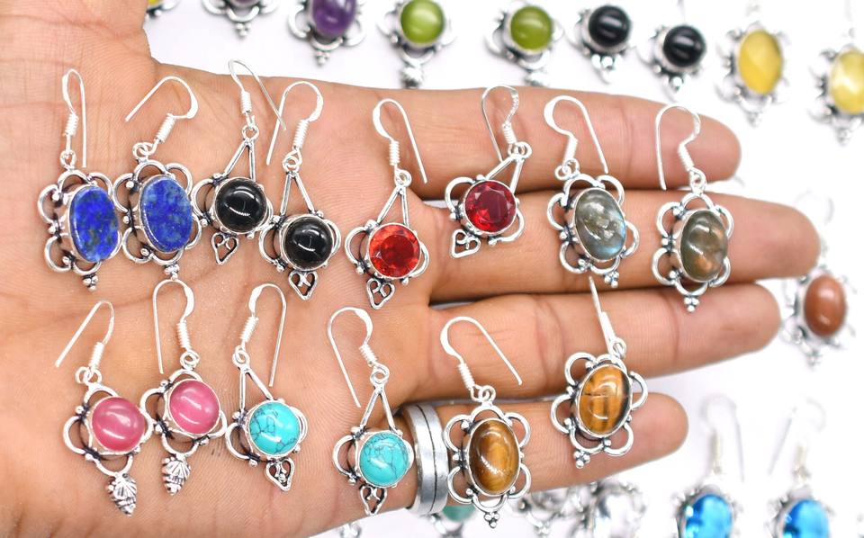 Vente directe multicolore américain à la mode boucles d'oreilles pendantes détaillants mélange de pierres précieuses forme de goutte d'eau avec hameçon lunette ensemble