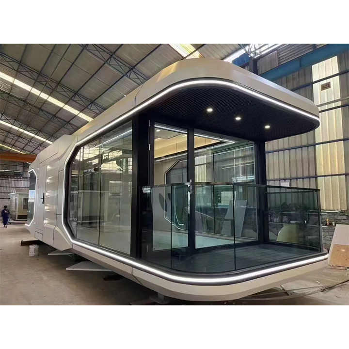 Vente directe de maisonnette de luxe moderne, portable, extérieure, mobile, en panneaux sandwich, pour glamping, bureau, hôtel-resort et usage comme capsule spatiale