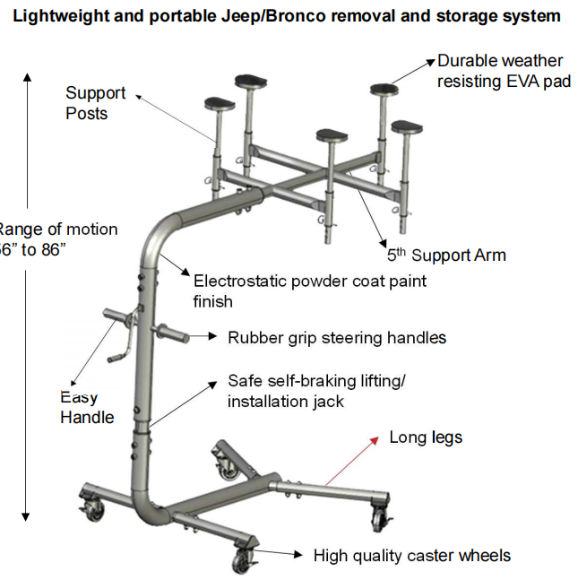 Système en acier inoxydable pour une personne, vente directe, pour un retrait et une installation faciles, pour le toit rigide Wrangler, système de levage YJ