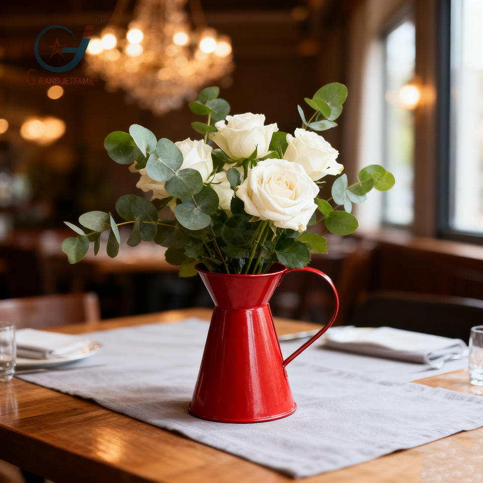 Vente directe 1.1 gallons couleurs rouges lait décoratif grande fleur de zinc Annique métal cruche à eau forme Pot de fleur pour la maison