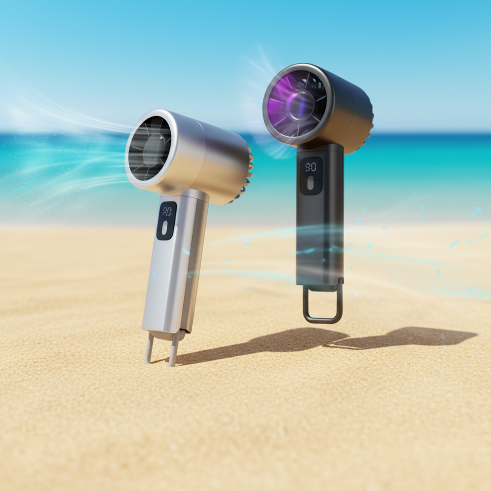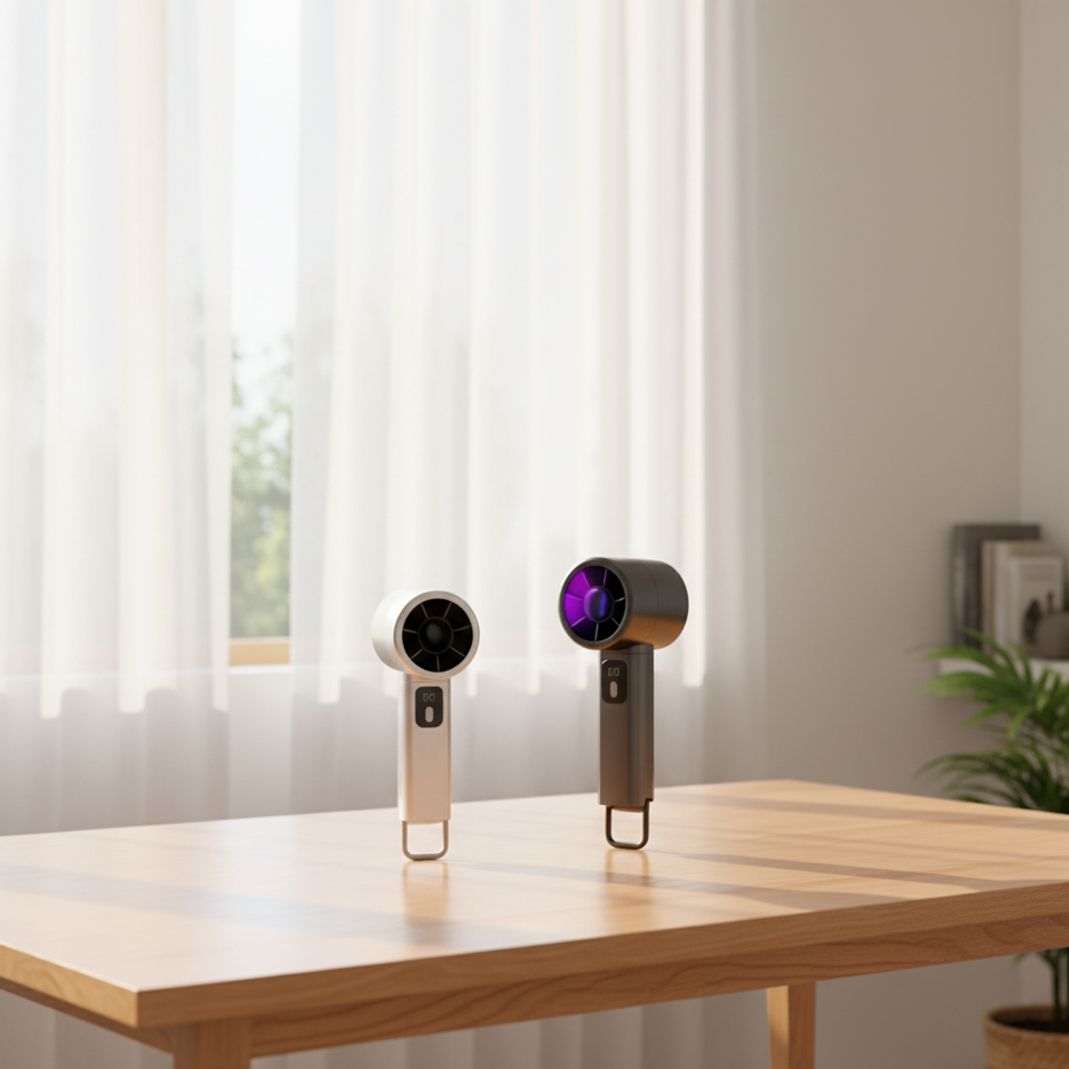 Ventilateur de poche LED noir rechargeable pour la maison, mini ventilateur portable USB rechargeable pour la nuit